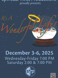 Dec 03, 2025, 7:00 PM – 10:00 PMSpiritual Twist Productions, 1250 Aversboro Rd, Garner, NC 27529, USAPerformed by our 8+ Christmas Cast A bumbling wayward angel named Clarence Odbody is selected as the heavenly choice to help George Bailey, a man of unrealized dreams, discover the treasures of family, friends and life itself. The true spirit of Christmas touches George Bailey and all who witness..